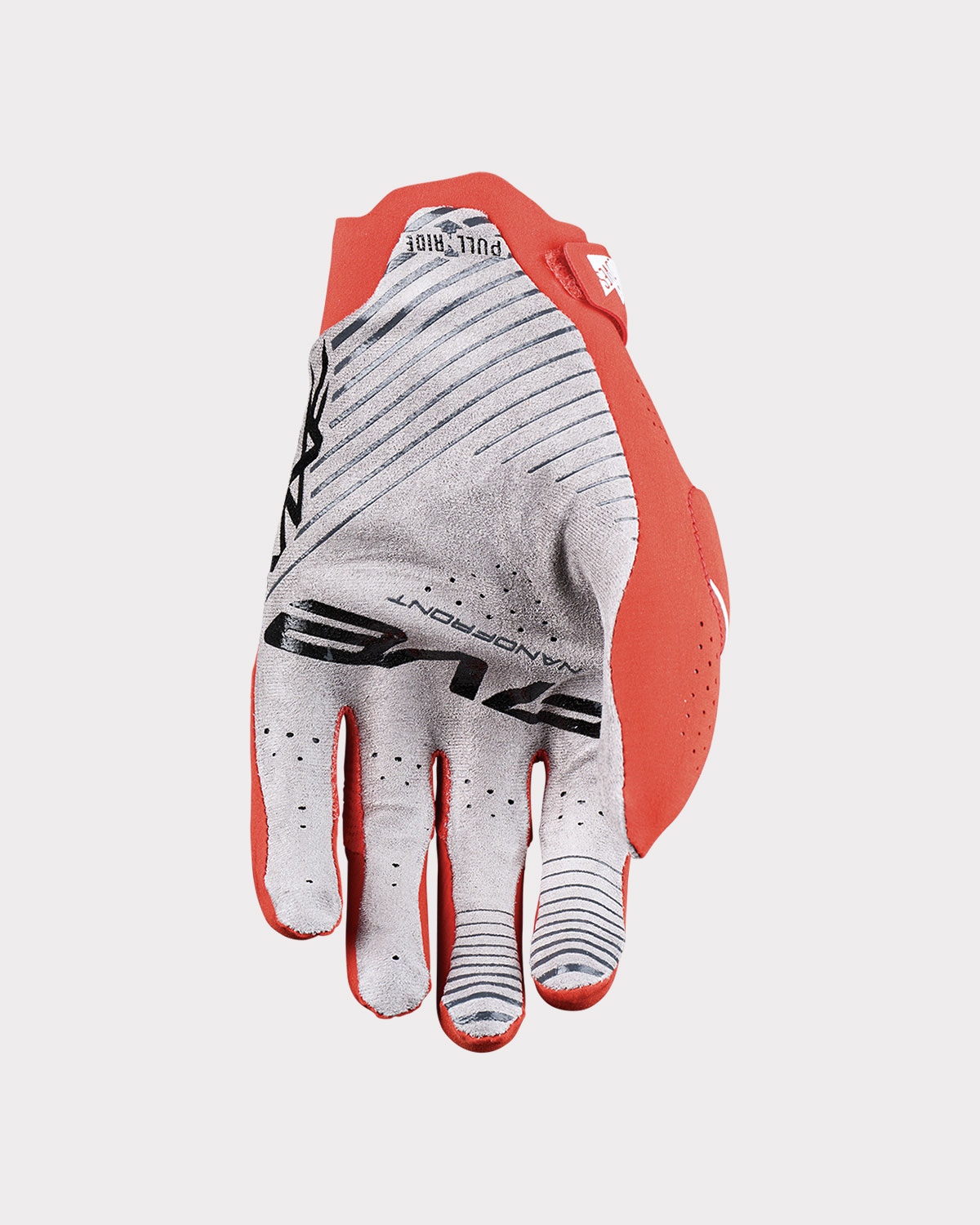 Destiné aux pilotes au style fluide et aérien, qui revendiquent le fait de faire corps avec leur machine et réfutent l’idée d’utiliser le moindre rembourrage dans la paume afin de mieux ressentir les commandes et mieux « lire » le terrain, il est à utiliser avec des poignées Soft (de préférence). Car, de la même manière qu’on n’utilise pas la même dureté de gomme de pneu en fonction du terrain, il convient de sélectionner avec soin ses poignées selon son style de pilotage ou ses préférences (et de bien y associer la paire de gant adéquate). Le MXF RACE impressionne, tant il offre une sensation de ne rien porter. Il intervient comme une seconde peau avec sa paume en Nanofront™ ; un matériau japonais ultra-fin et absorbant offrant un grip incroyable, que FIVE avait inauguré en motocross sur le MXF PRORIDER.